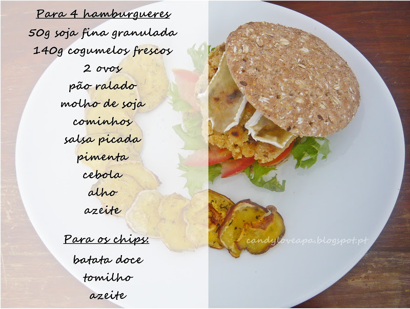 Hamburgueres de Soja e Cogumelos com Chips de Batata Doce