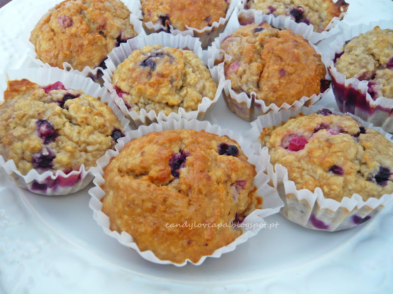 Não adicionei qualquer açúcar nem nenhum substituto, acho que a fruta é suficiente para adoçar os muffins. Claro que para os mais gulosos podem adicionar açúcar. Mas assim sem açúcar, não nos setimos culpados por os comer.